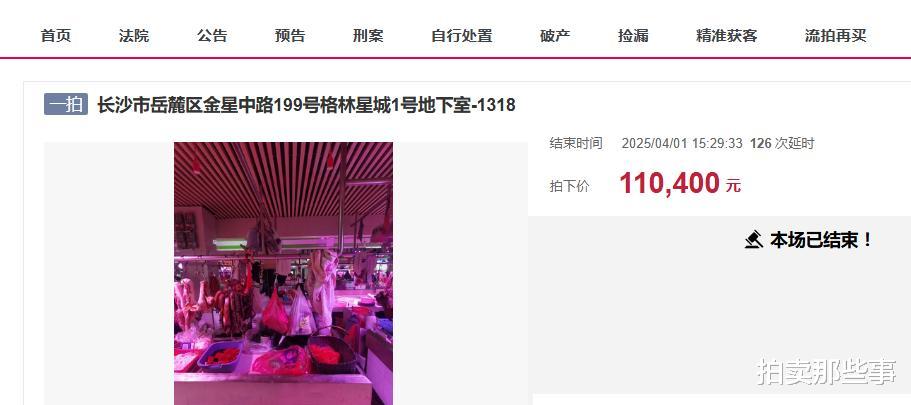 近日,在长沙市司法拍卖市场上,一宗位于长沙市岳麓区金星中路199号格林星城1号地下室-1318的房产迎来了被拍卖的最后一天竞拍。此次拍卖的房产,就是一个小小的猪肉摊位,所在的菜市场叫做格林星城菜市场,摊位面积只有6.76平方米,刨去公摊面积,实际可利用的面积非常小,因为这种菜市场的摊位公摊面积超大。拍卖公告说摊位无占用,无租赁,但是拍卖给出的图片显示,该摊位现在还是用来卖猪肉的。