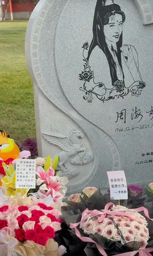 李勤勤儿子儿媳到达周海媚墓地时,墓碑周围已经放了许多鲜花,应该是周海媚生前的朋友和粉丝送的。周海媚的墓碑上也刻着她生前饰演的角色周芷若,以此来纪念她。