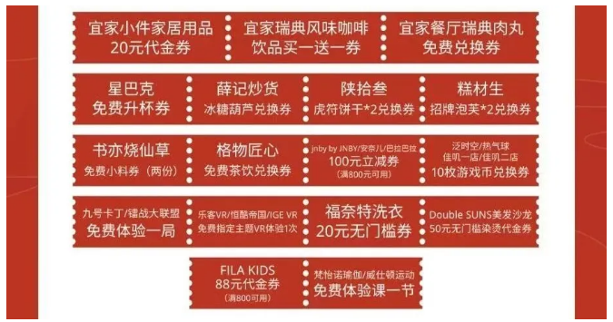 去荟聚,忘领这个就亏大了!300元新春券包内,有宜家、星巴克、陕拾叁、糕材生、FILA KIDS...超过20家品牌的福利。