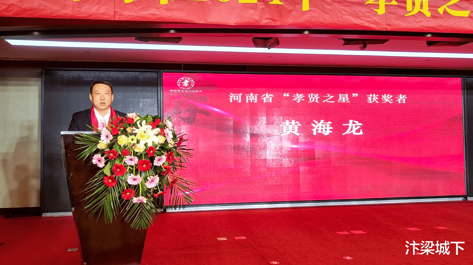 黄海龙作为河南省“孝贤之星”在颁奖典礼上发言,他表示:“今天很荣幸能在现场向开封市的‘孝贤之星’和‘孝德少年’获奖者表示最热烈的祝贺。你们用实际行动践行了孝道和美德,不仅在家庭中树立了榜样,更在社会上传递了正能量。你们的努力和付出,为社会树立了良好的道德风尚,值得所有人学习。希望你们能够继续发扬光大,将孝德精神传承下去,为构建和谐社会贡献自己的力量。再次祝贺你们,愿你们未来更加辉煌!”