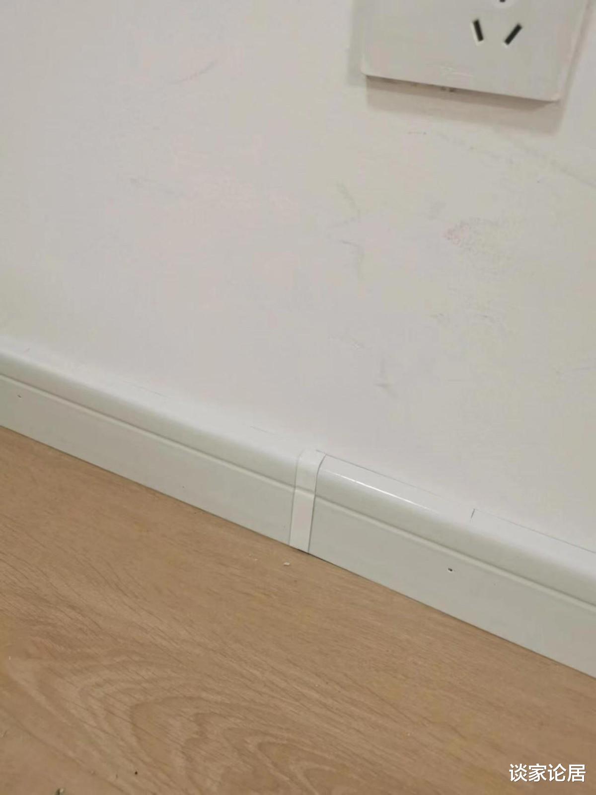 而且PVC踢脚线也不耐用,其表面镀的一层装饰纸,时间一久就很容易褪色、脱落。同时也不耐刮,平时不小心踢到就很容易有刮痕。