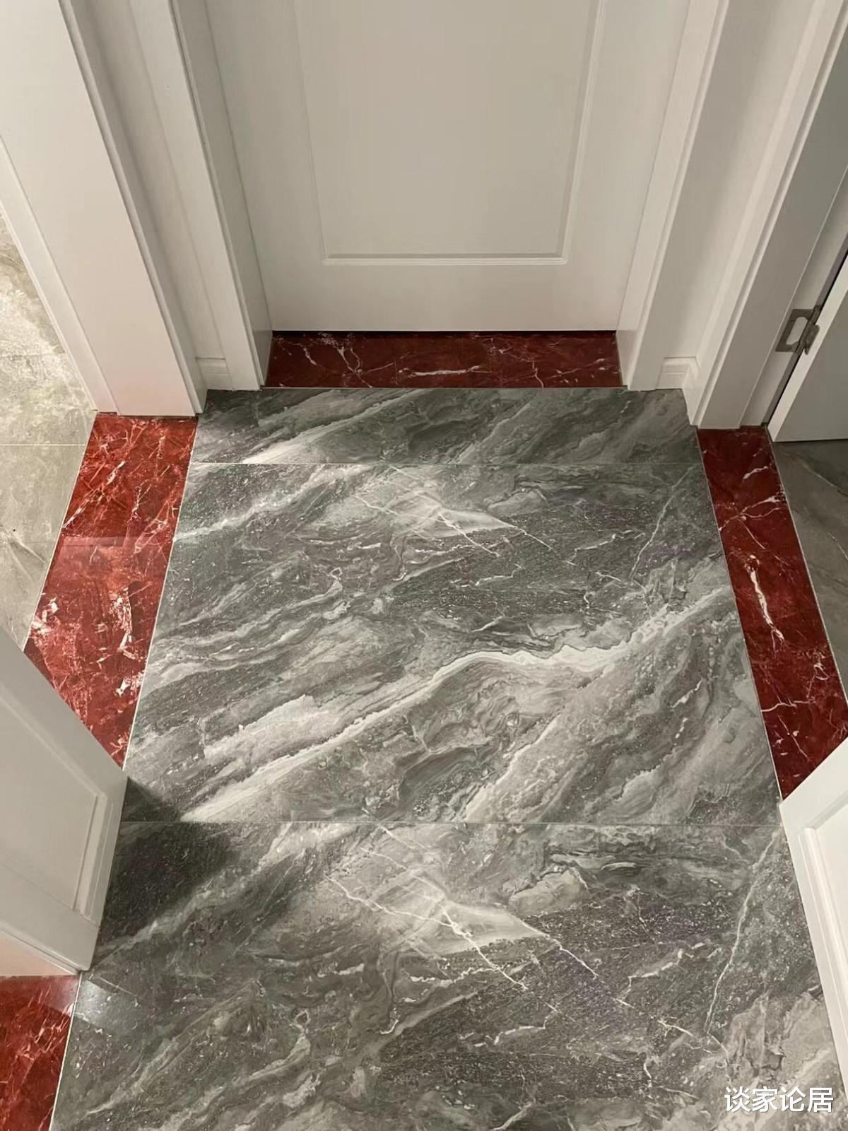 这是网友@人间清醒家的走廊,中间是米黄色瓷砖,四周做了一圈黑色波导线,再配上红色的门槛石,效果真的是不敢恭维。
