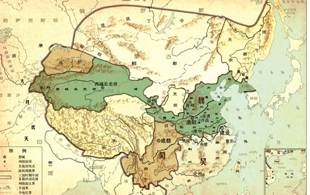 面积上,曹魏坐拥几乎整个长江以北,华北平原、山西高原、山东丘陵、关中平原以及辽东和西域,面积达到四百多万平方公里。