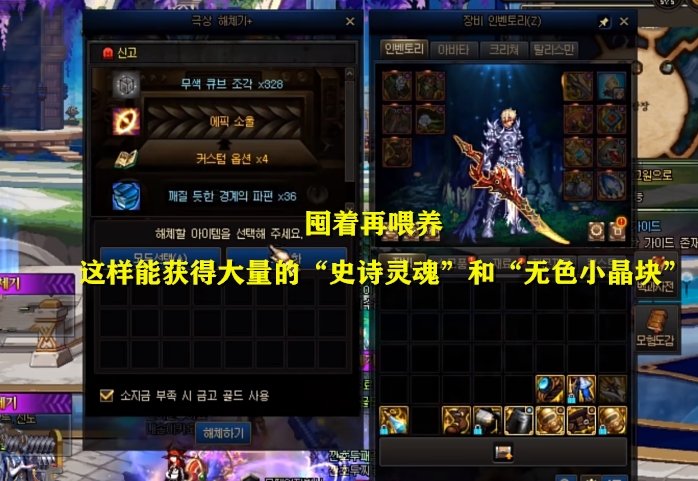 【1】能获得史诗灵魂。现阶段“装备系统”没改版时,用史诗喂养后,装备就直接消失了。但3.21版本更新后,把装备全部分解,除了给经验材料外,还会给“史诗灵魂”和“无色小晶块”。