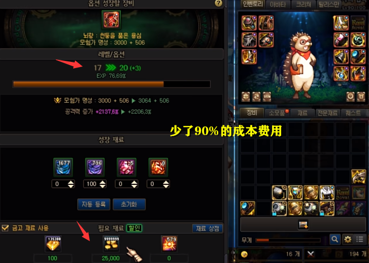 同时韩服“喂养系统”改版时,还推出了配套活动,喂养只需要“一折”,可以节省90%的成本。