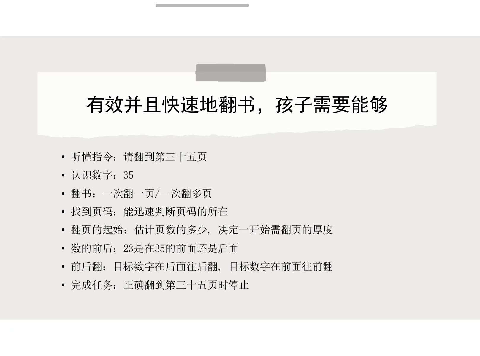 要完成这看似平常的课堂指令,既需要学生具备专心倾听的技能,也需要具备理解复杂语言指令的技能,更需要具备快速而精准地翻书的动手操作技能。对于一个高功能的自闭症孩子,我们往往会不遗余力地训练他前两项技能,却极有可能忽略了翻书技能的训练。如果前两项技能孩子都已经具备了,却搁浅在翻书技能上,那就太可惜了。
