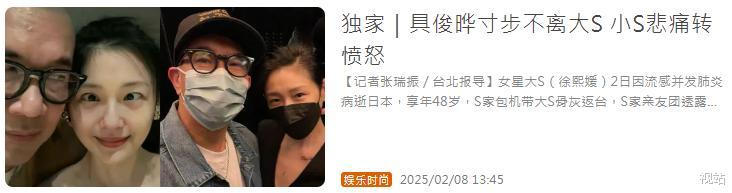 大S的离去,让我们看到了生命的无常,也见证了亲情、爱情的珍贵与脆弱。在这场悲痛之中,有具俊晔的深情守护,有小S的悲伤与愤怒,有亲友的温暖悼念,也有公众对她最后的祝愿。希望大S在天堂安息,也希望她的家人能早日走出悲痛,带着她的爱与希望继续前行。
