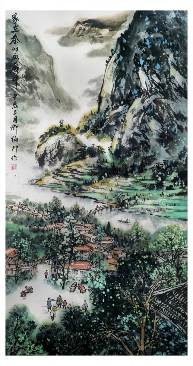邓福邦的画作题材根植于大秦山之景,他通过写生捕捉秦山的壮丽与韵味,将秦山的雄伟与广袤之美展现得淋漓尽致。在艺术风格上,他精妙地运用阴阳对比,水墨的浓淡干湿相互交织,构建出层次丰富、视觉冲击力强烈的画面,形成了浑厚大气、风格兼容南北的独特艺术风格,赢得了画坛的广泛赞誉。