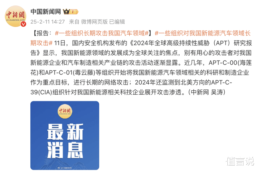 近年来,随着我国新能源汽车行业的迅猛发展,一些别有用心的“黑媒体”、“黑公关”势力频繁活动,通过散布虚假信息、恶意诋毁等手段,试图破坏我国新能源汽车企业的声誉,扰乱市场秩序。近期,中国新闻网报道,有组织开始将我国新能源汽车领域相关的科研和制造企业作为重点目标,进行长期的网络攻击,为此,必须高度警惕。
