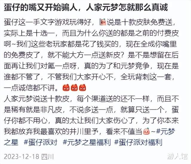 而事实上在元梦之星还未出现之前,网易蛋仔派对对于玩家的压榨更为严重,无论是游戏体验还是氪金体系都曾有很多人吐槽。在网易站着没有竞品一家独大的先天优势将这些通通抛之脑后,不断损害广大消费者的权益。