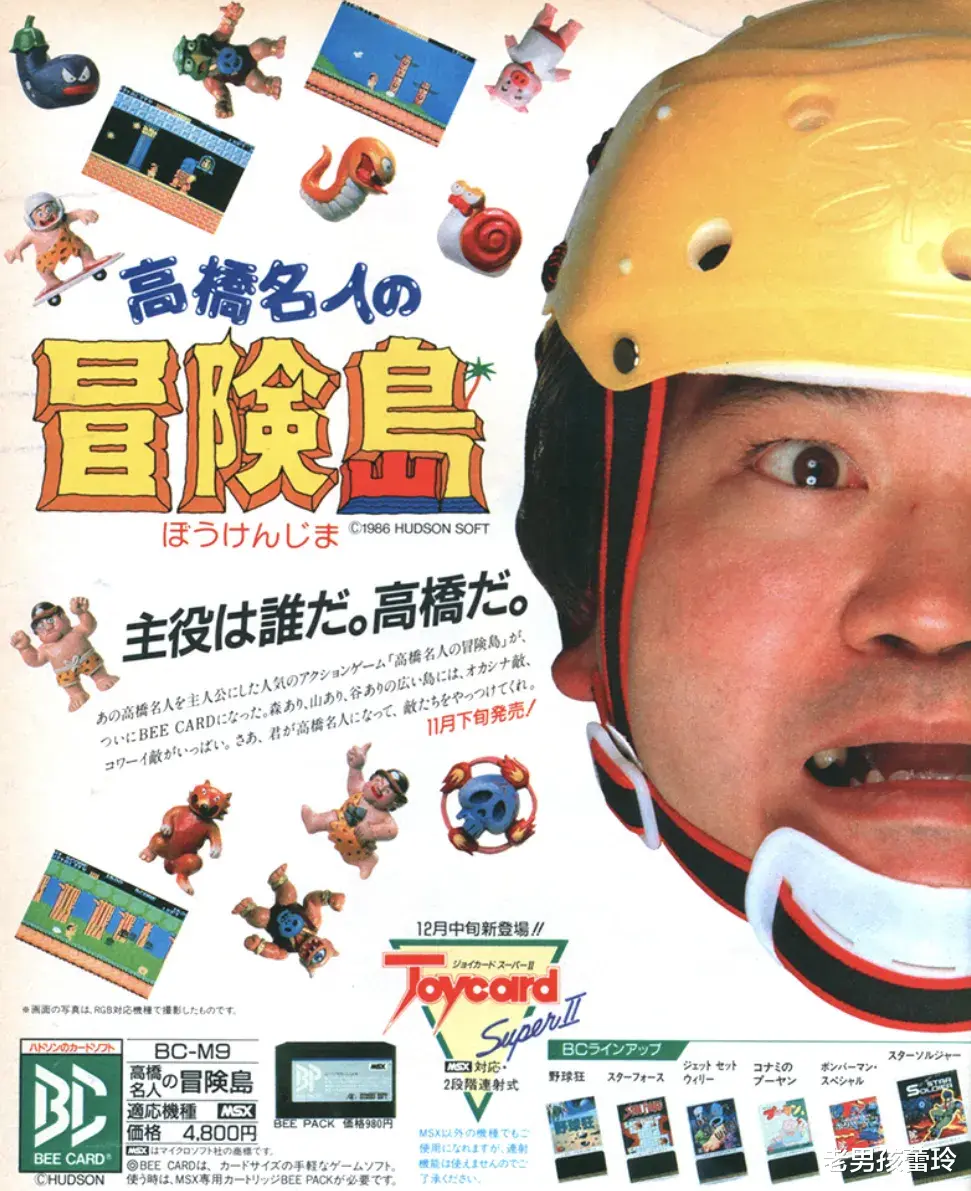 至于《FC冒险岛》十分滑稽的主角形象,则是来源于FC时代最具影响力的电竞明星——高桥名人。