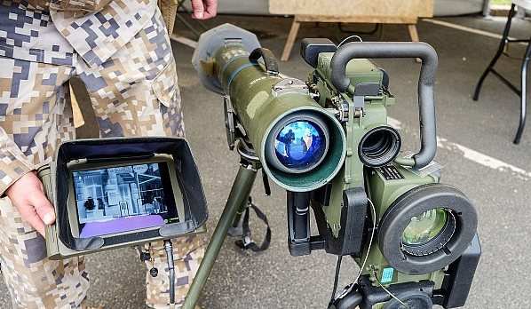 ■拉脱维亚陆军装备的“长钉”-LR反坦克导弹系统。注意士兵手中展示的导弹热成像仪画面。