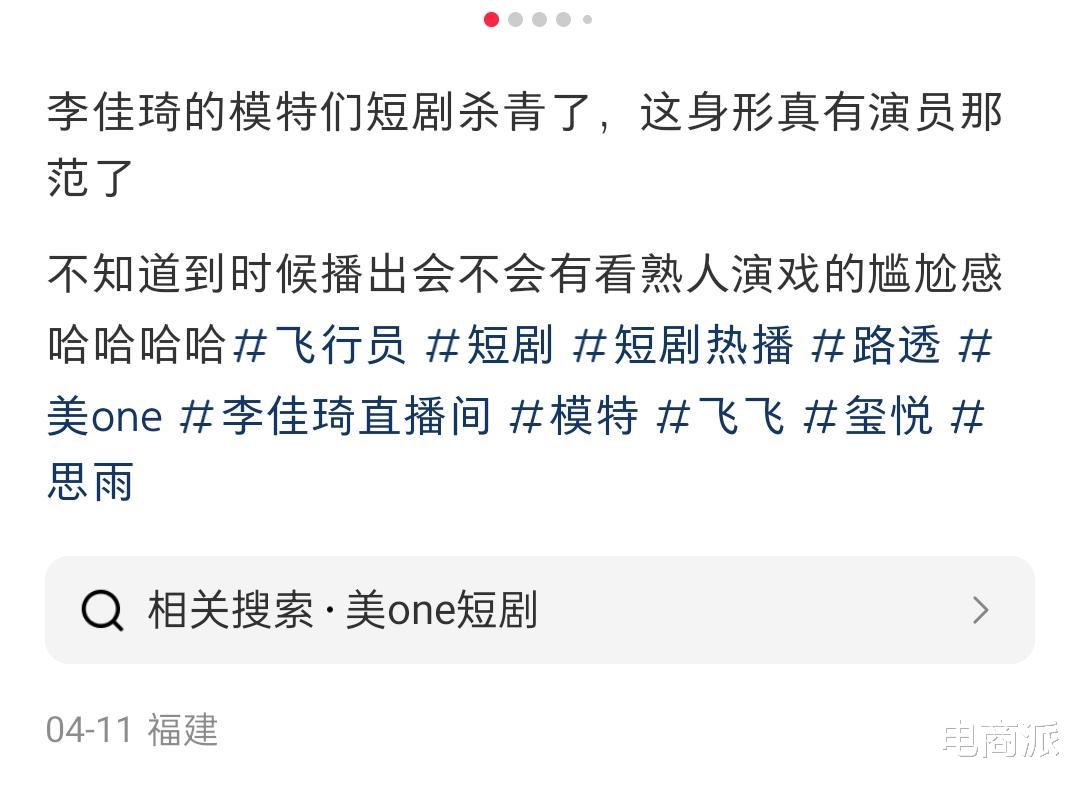 近段时间,李佳琦在短剧业务的动作颇为频繁,不仅自己上场拍短剧,而且旗下主播也接连参演。