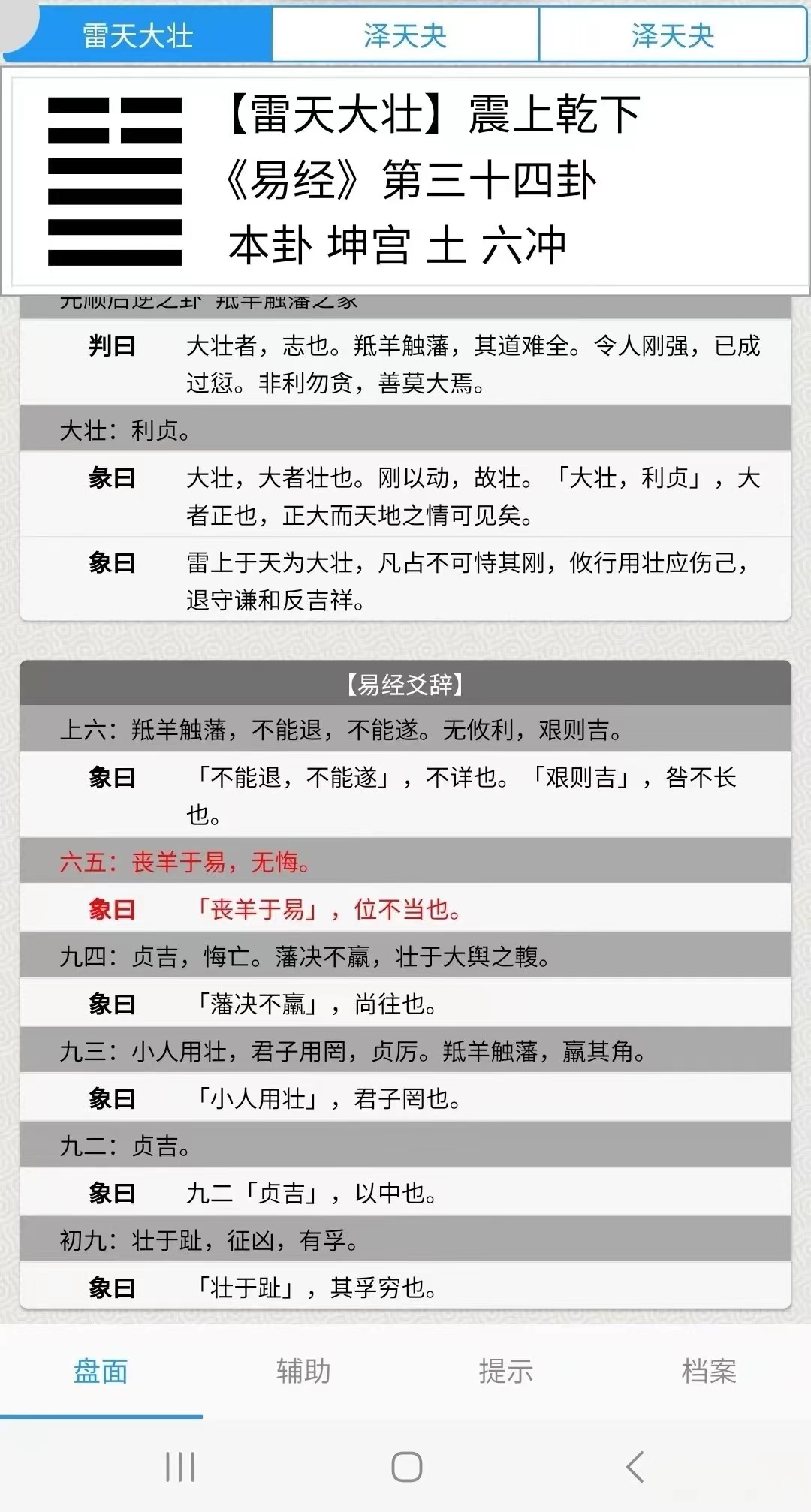 今天的是得雷天大壮,六五爻动,变泽天夬