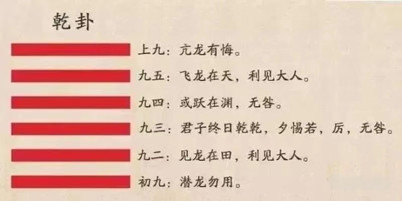 是乾为天卦,从下往上数,六条横杠,横杠就是爻