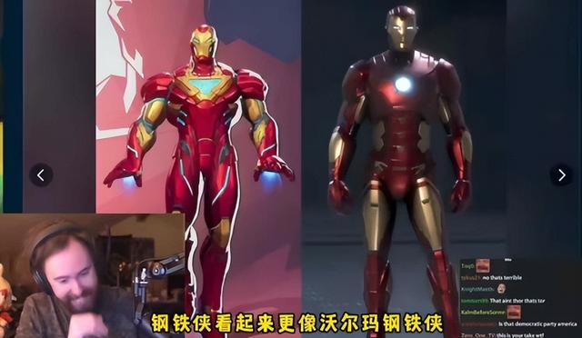左边是网易设计的钢铁侠,右边是美国公司设计的钢铁侠。网易的钢铁侠,肌肉发达,倒三角,充满男性荷尔蒙。美国的钢铁侠,被吐槽是“沃尔玛售卖的廉价玩具”。