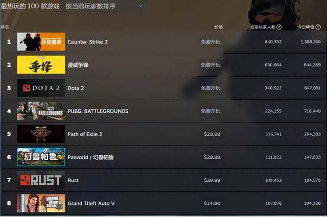 这是Steam平台同时在线玩家数的排行榜。一款名为《漫威争锋》的新游,以64万名玩家同时在线的成绩排名第二,成为2025年第一款火爆全球的现象级游戏。