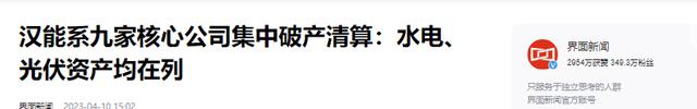 汉能系九家核心公司集中破产清算:水电、光伏资产均在列=界面新闻2023-04-10 15:02