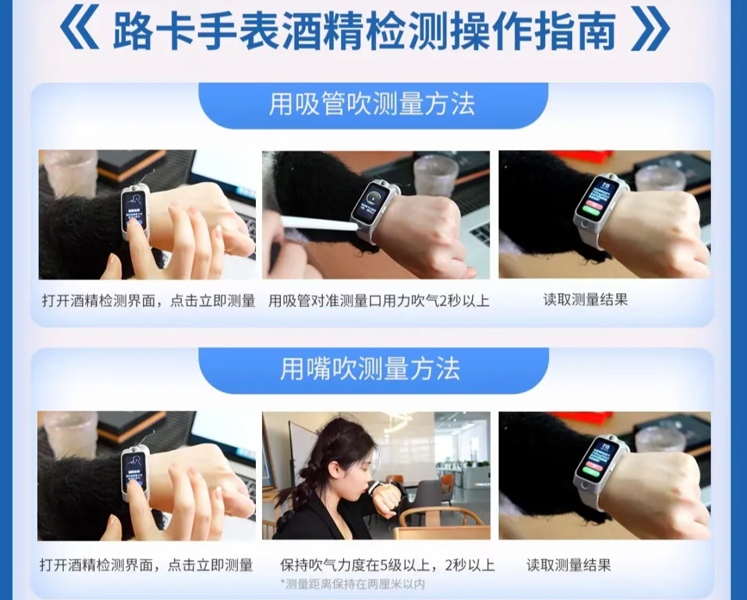 路卡手表具备精准的酒精检测功能,能够实时监测人体血液中的酒精含量,让你清楚地了解自己的身体状况。