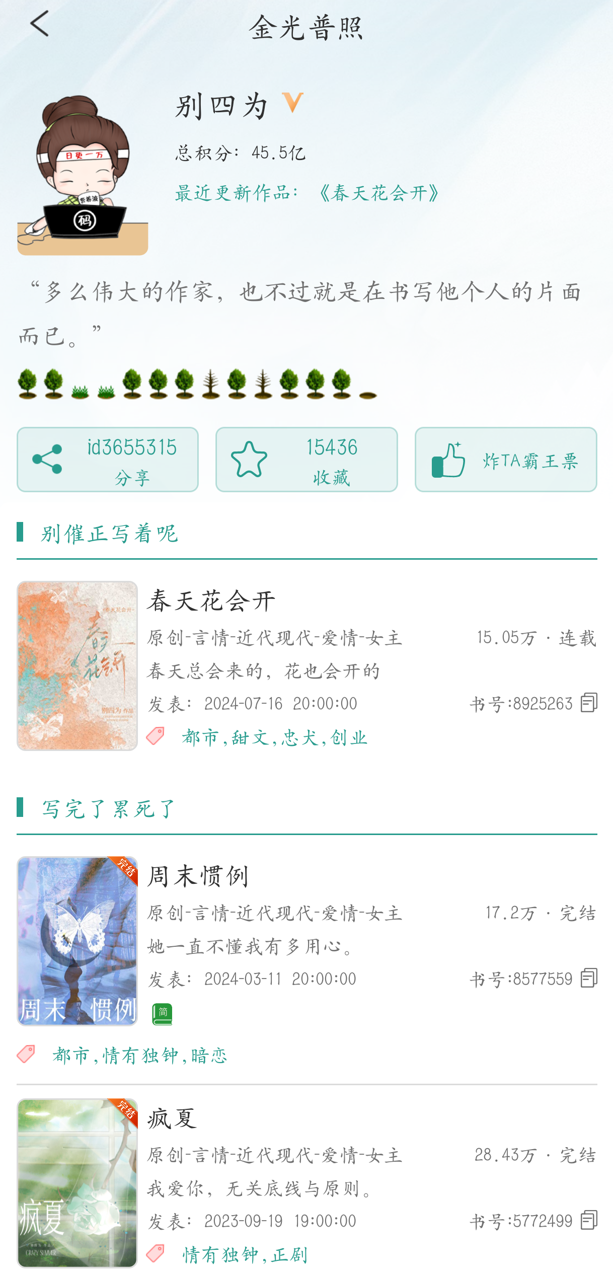 所以,慕名而来,也就这样。我原本以为能看到一个轰轰烈烈的BE文,即便是过于脱离实际的纯粹言情风我也认了,没想到看到了一个这个。