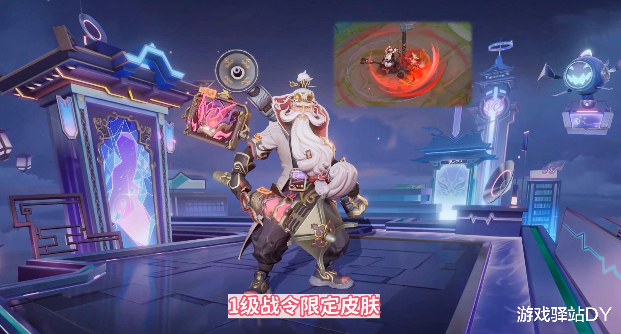 老夫子—百相守梦则是勇者级品质,属于1级战令限定,玩家解锁进阶版战令后即可领取,该皮肤的面具以紫色为主色调,皮肤加入了不少复古元素,比如麦克风、护目镜,同时还背着一个能探测小梦兽的天线和显示器。因为只是勇者级,所以该皮肤的出场与原皮动作一样,亮点是拥有与百里守约相同的地台作为背景,而技能特效方面,也只是简单的变色,以红色为主色调的技能光效。