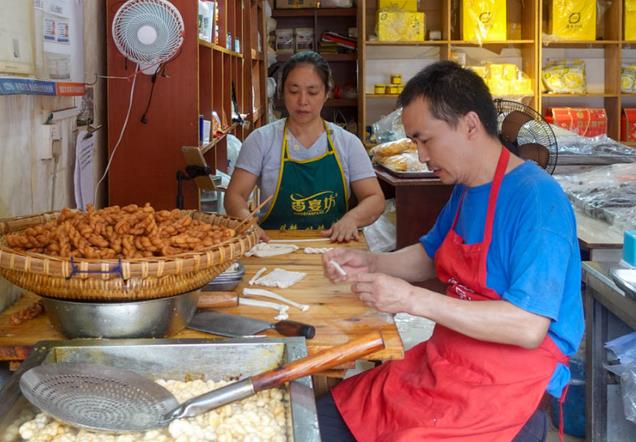 在全国的大街小巷,总能看到“天津大麻花”的流动摊位。