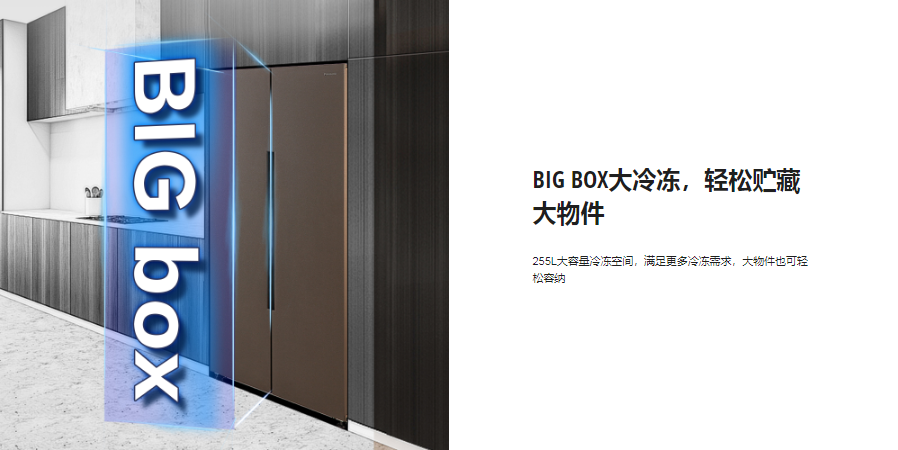 其中最受消费者欢迎的当属“大海豚”——松下纤尚·BIG box系列冰箱。这款冰箱在空间设计上极具人性化。考虑到冰箱顶部深处空间的使用率较低,松下把压缩机顶置,不仅提高了空间利用率,还完美解决了冰箱的散热问题。也正是得益于此,纤尚系列扩大了冷冻室和冷藏室底部抽屉的空间,使得整个冰箱有超570L的大容量,才有了“大海豚”的美称。