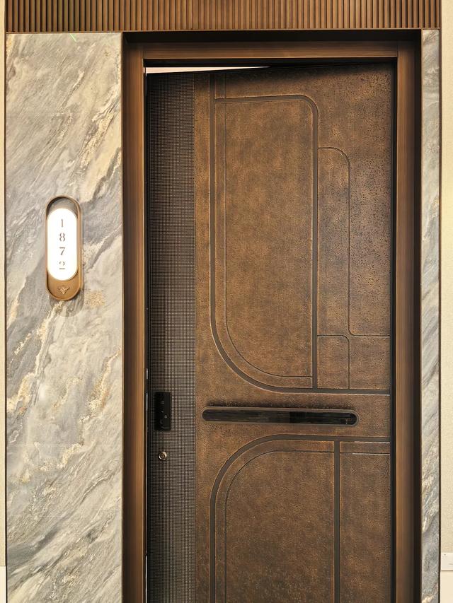 当涛哥来到建面约112㎡户型创意展示空间,瞬间就被定制铝铸门所吸引,呈现出非常有质感的纹理。