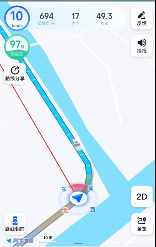 高德骑行安全预警,即是为缓解这一核心问题所研发的最新功能,通过在缺少物理隔离带的路段,提供盲区会车辅助信息,尽可能提升骑行者的安全指数。