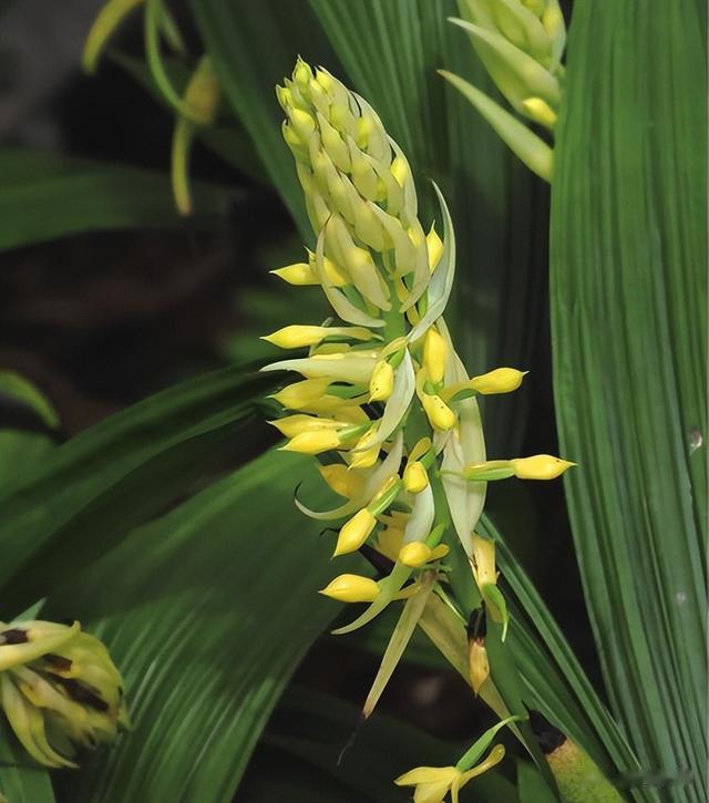 地生植物。假鳞茎短。叶狭椭圆形,先端急尖,基部渐狭为柄。花1~2个,总状花序圆柱形,花黄色。花期11-12月。适合公园、绿地、庭院等树荫下丛植或片植观赏。
