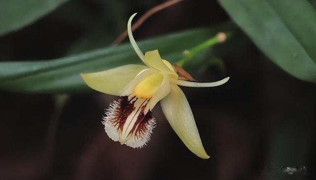 附生植物。假鳞茎直立,圆柱状,顶生1枚叶。叶革质,长圆形。花1个,总状花序缩短呈伞状,花淡黄色。花期5-8月。可用于公园、庭院等附石附树栽培。