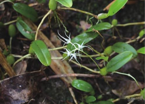 附生植物。鳞茎密集着生,卵状长圆形或楠圆状顶端具2~3枚叶。叶楠圆状披针形至倒卵状披针形。花序1个,花白色或略带黄色。花期8-9月,果期10-12月。可附树或附石栽培用于庭园绿化。
