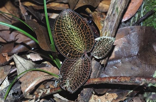 地生植物。根状茎肉质。茎肉质,圆柱形,具2~4枚叶。叶片卵圆形或卵形,上面暗紫色或黑紫色,具金红色带有绢丝光泽的美丽网脉,背面淡紫红色。总状花序,花白色或淡红色。花期8-12月。为著名药用植物,现已产业化栽培。