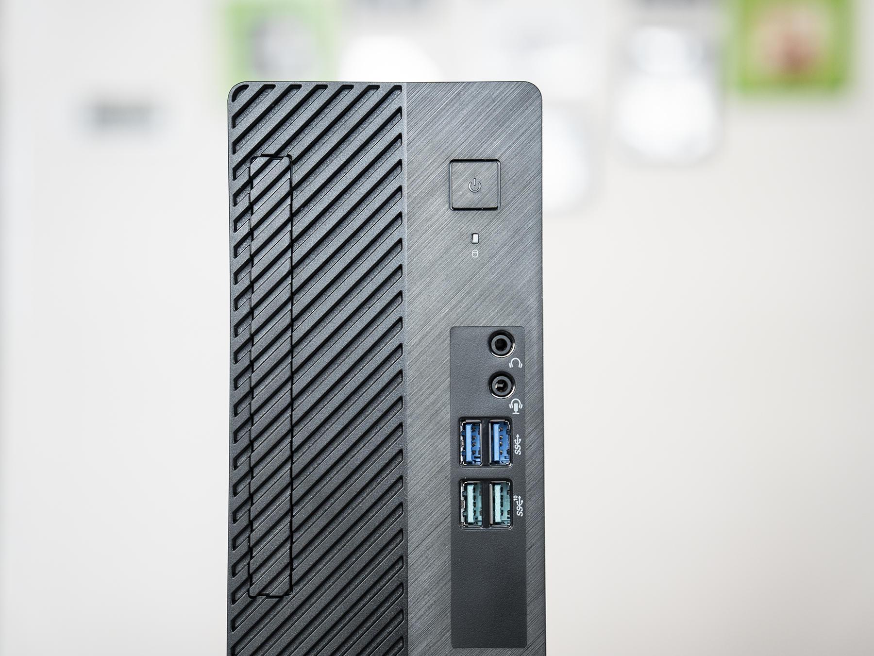 在绝大多数人的印象里,商务主机的外形用一个词就可以形容“又大又笨”。而华硕破晓X 9L给我的第一印象则是“轻薄”,293X94X340mm的整机三维,哪怕是放在桌子上也占不了多少空间。