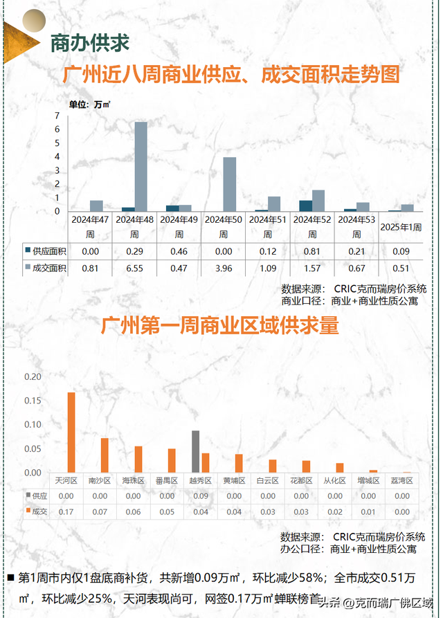 本周商品住宅供应229套,供应2.7万㎡,环比下降81%,番禺、白云为主力;成交1450套,成交面积14.82万㎡,环比下降18%。