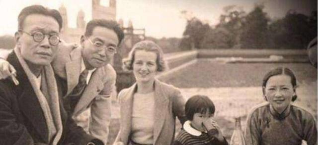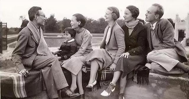 左边第一个是金岳霖,他正望着林徽因,脸上堆满了笑容。林徽因呢,正抱着她的女儿梁再冰。