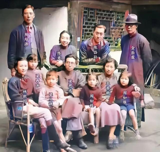 这张照片拍于1940年的四川宜宾,上面有两个家庭的人。一个是周培源家,另一个则是林徽因家。