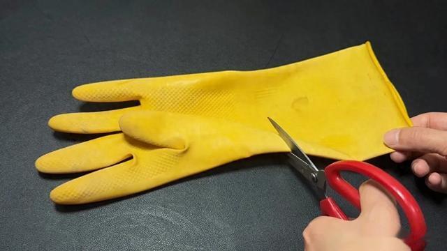 相信很多人都会选择将它扔掉,扔掉之后买一副新的,即使像这样的橡胶手套破了,咱们也不要扔掉。