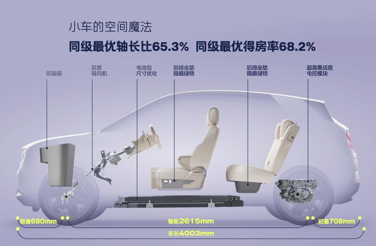 firefly萤火虫拥有充满巧思的空间和智能化应用。同级最优的轴长比。同级最大的92L前备箱,后备箱容积335L,二排翻折可获得超1253L纯平空间。全车多达27处收纳设计,小车空间也有精彩生活。