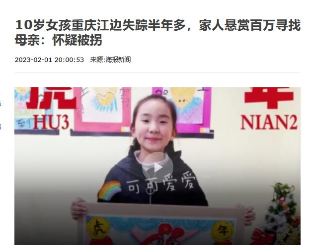 信息来源:环球网-2022-11-10-一个转身就不见了!10岁女孩江边失踪,家人悬赏10万直播寻女