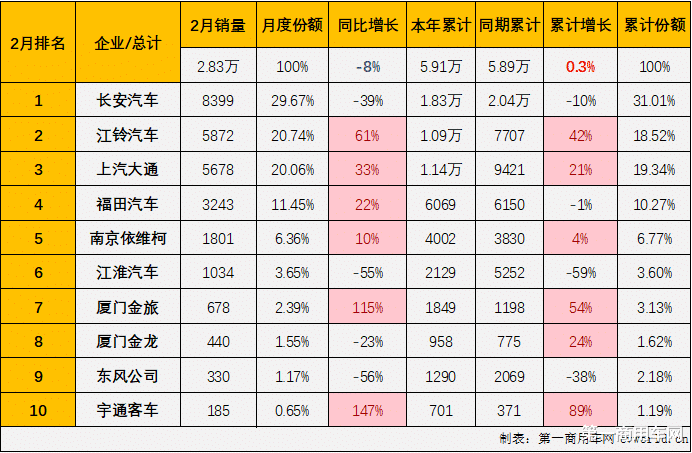 1-2月累计销量微增0.3%,大通/江铃等份额提升