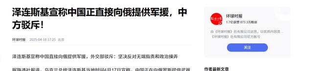 2025年4月17日,泽连斯基首次指责中国为俄罗斯提供武器火药,干预冲突。