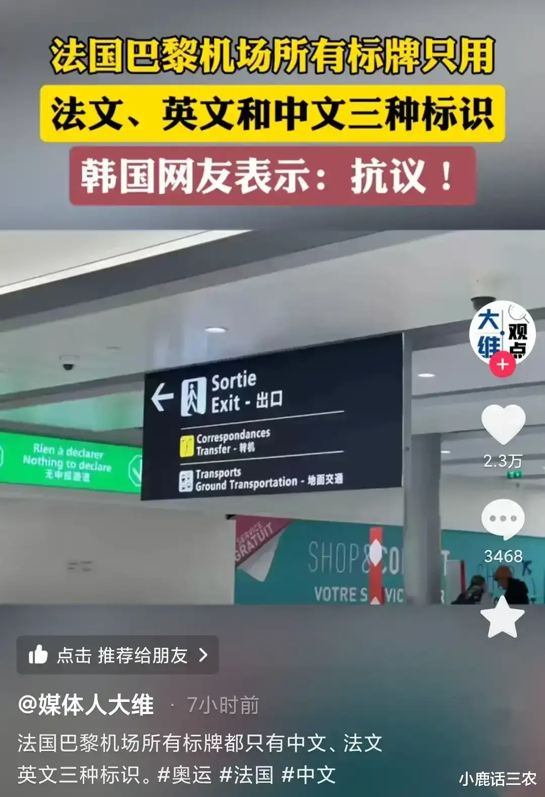 近年来,随着东方大国和韩国的国际地位不断提升,越来越多的国家开始重视中文和韩文,各种国际会议和活动上也都出现了中文和韩文的标识,韩国网友对巴黎机场没有韩文的标牌感到非常意外和不满,认为这是对韩国的一种忽视和不尊重。