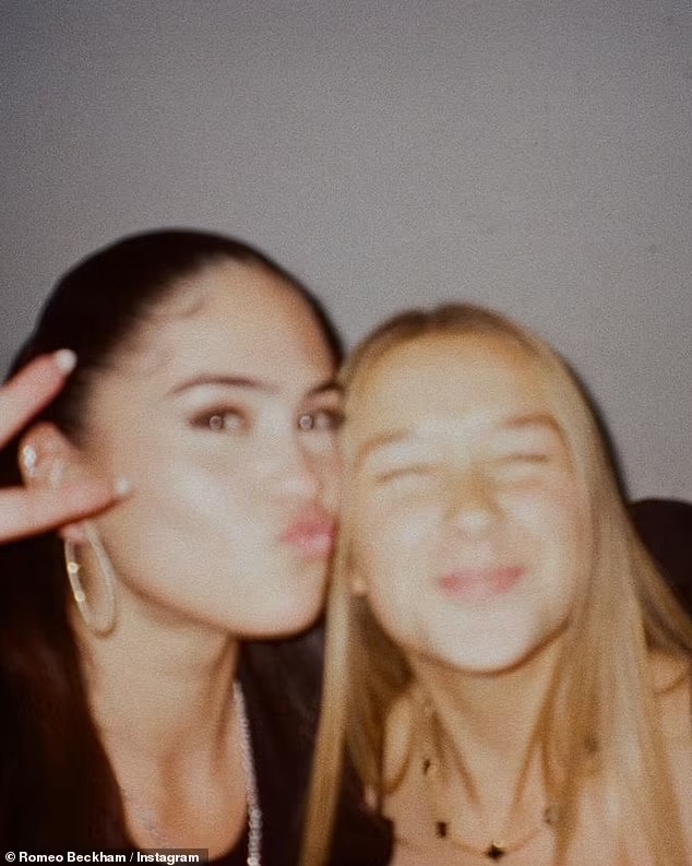 照片中的罗密欧和Kim笑容甜美,依偎在一起,显得十分幸福。在另一张照片中,Kim与罗密欧的妹妹哈珀(Harper)合影,甜度十足。Kim看起来已经融入了贝克汉姆的家庭,得到了家人的认可。