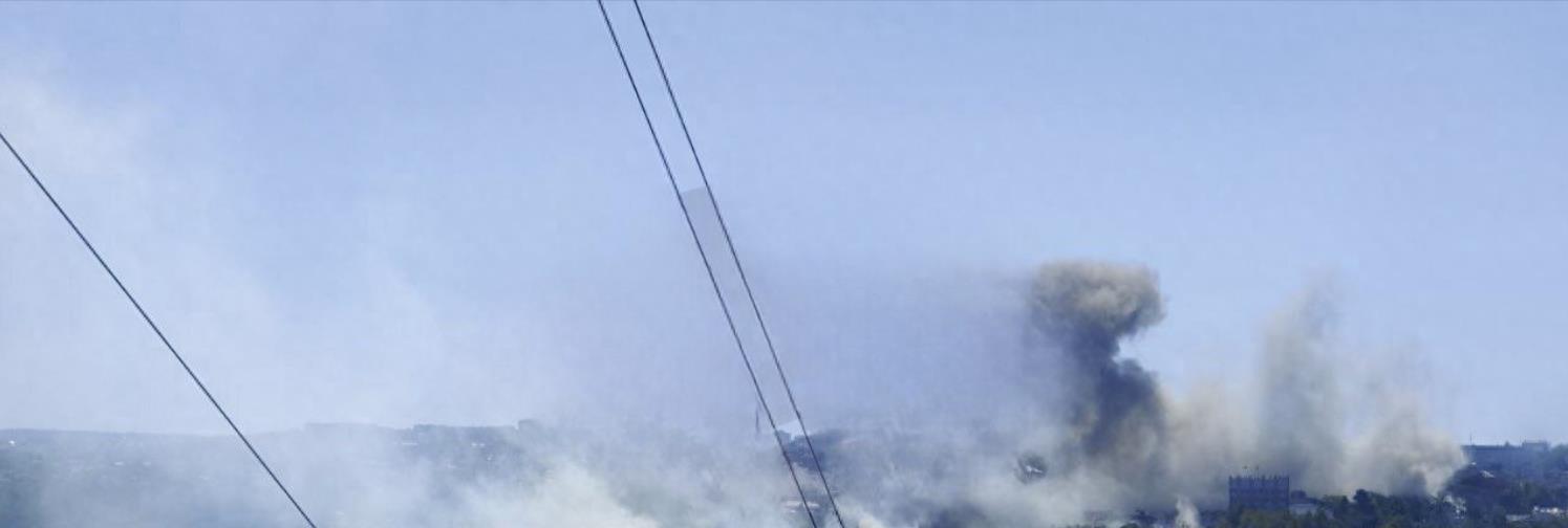 袭击发生在白天,可以看到浓烟和建筑物损毁