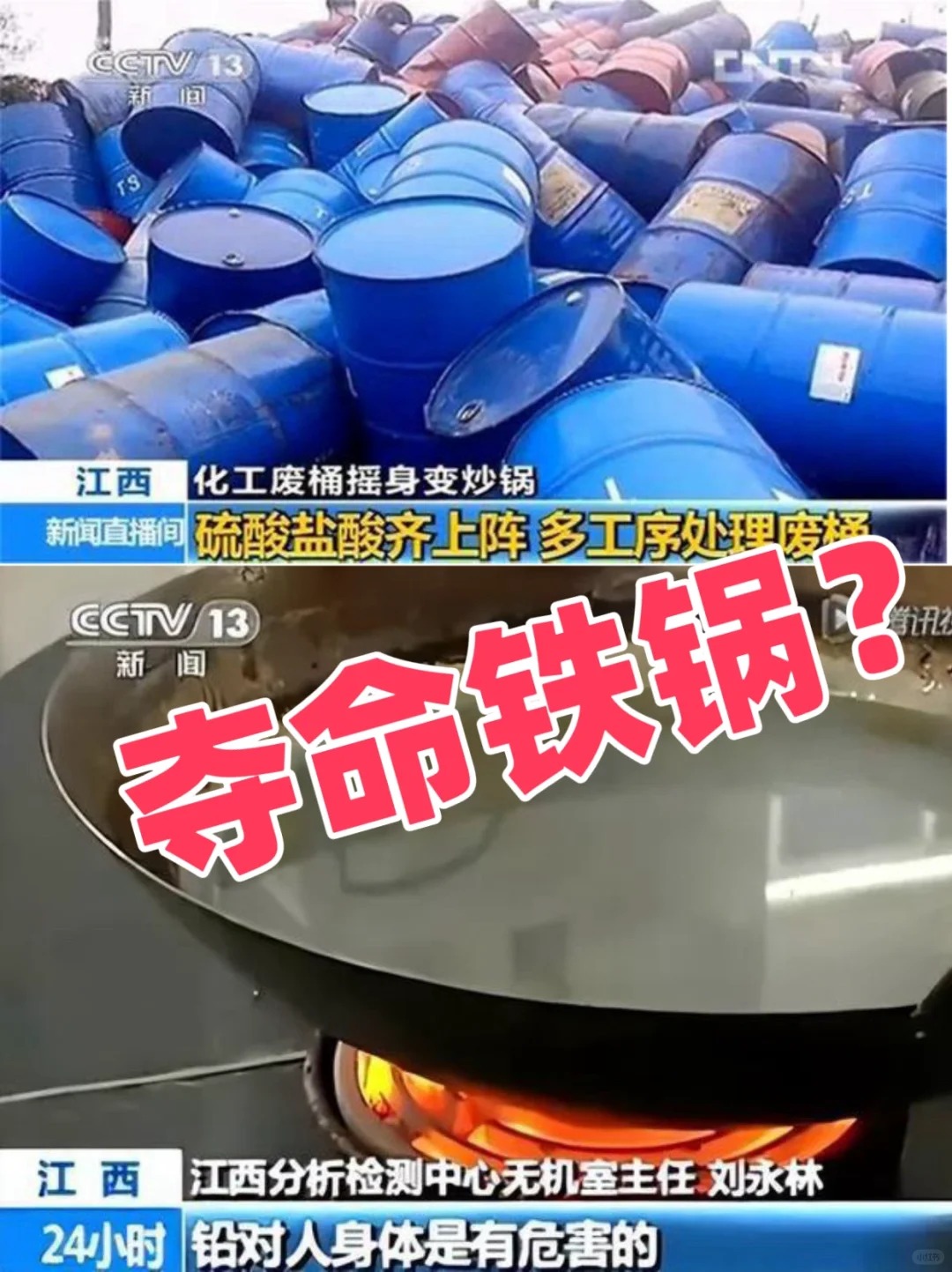 因为商家会为了节省成本,使用工业废料,回收金属或者是化工桶来作为它的原料。而这些材料本身还含有大量的铅、镉等重金属,经过高温烹炒后就会溶出。