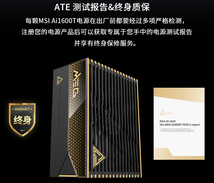 注册产品即可享受终身质保服务,每颗电源出厂前均通过ATE测试,用户可获取专属电源测试报告,全面掌握电压稳定性、纹波等关键参数。
