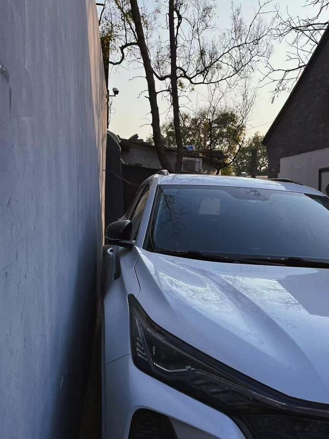不得不说,在这里胡同里,停车的水平被练得炉火纯青,这车停的就差贴墙上了。