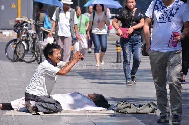 不知道这样走了多长的时间,男的身上的那身衣服已经变的肮脏不堪,鞋子上也露出了那漆黑的脚指头。女的身上那身红衣服也已经变成了灰色,散乱的头发上还有几根枯黄的杂草,但是脸还是很白的,是出奇的白,手里拿着一个矿泉水瓶,冲着路人们一直傻笑。
