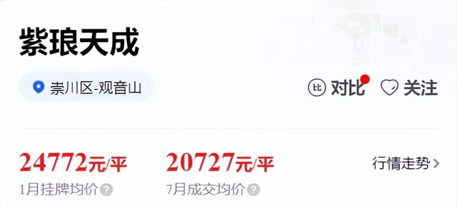 • 紫琅天成最近一笔成交发生在去年7月,建面约110㎡高楼层,成交价约2.07万/㎡,对比首开价跌幅约30%。